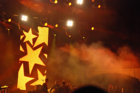 En esta foto pueden ver en la parte inferior derecha la cara de dolor de Noel, mientras era ayudado a ponerse de pie. Liam apenas se daba cuenta de lo que sucedía, mientras los de seguridad sacaban al tipo.(Click sobre la foto para verla en grande)