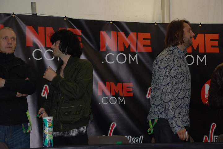 Tim Burgess (centro) y Jon Brookes (derecha) en el V Festival 2010